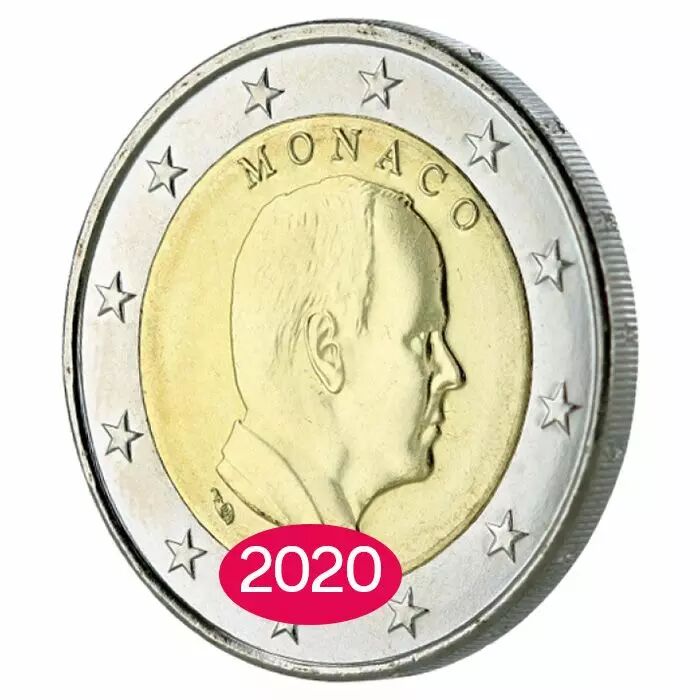 This 2 euro coin commemorates the year 2020 and features the portrait of Prince Albert II of Monaco. It is intended for circulation and was minted in UNC (Uncirculated) quality.