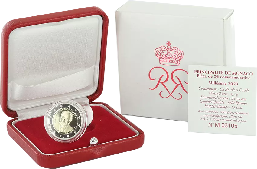 Accueil > Monnaies en Euro (depuis 1999) > Monaco > Monaco 2 Euros Commémo. BE 2023 - 100 ans du Prince Rainier III - Série spéciale résidents Rouge