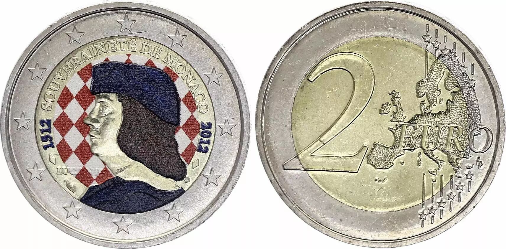 Home > > Monaco 2 Euros - Lucien I - Colorised - 2012 - Bimetalic