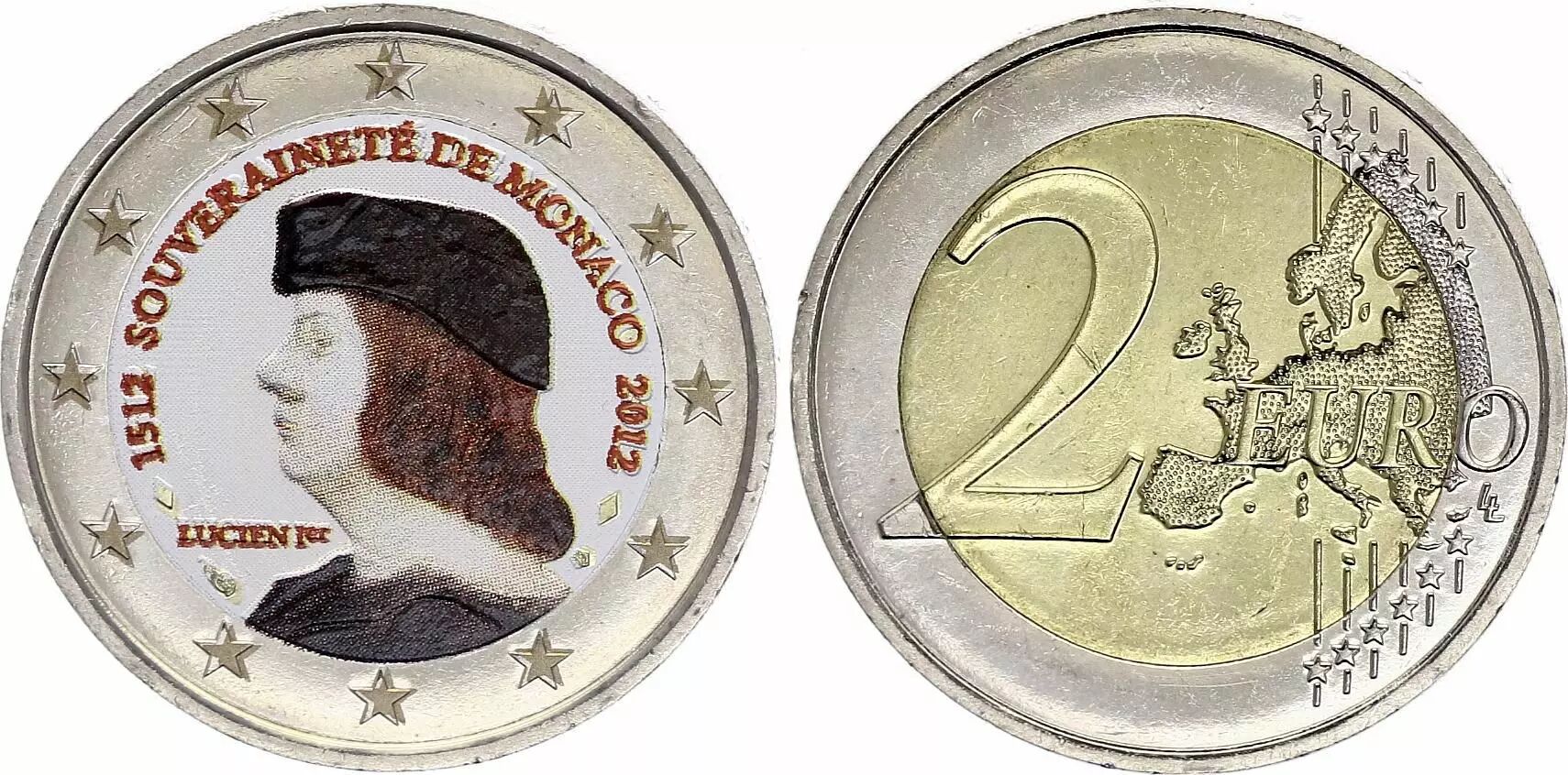Pièce Monaco 2 Euros - Lucien Ier - Colorisée - 2012 - Bimétallique