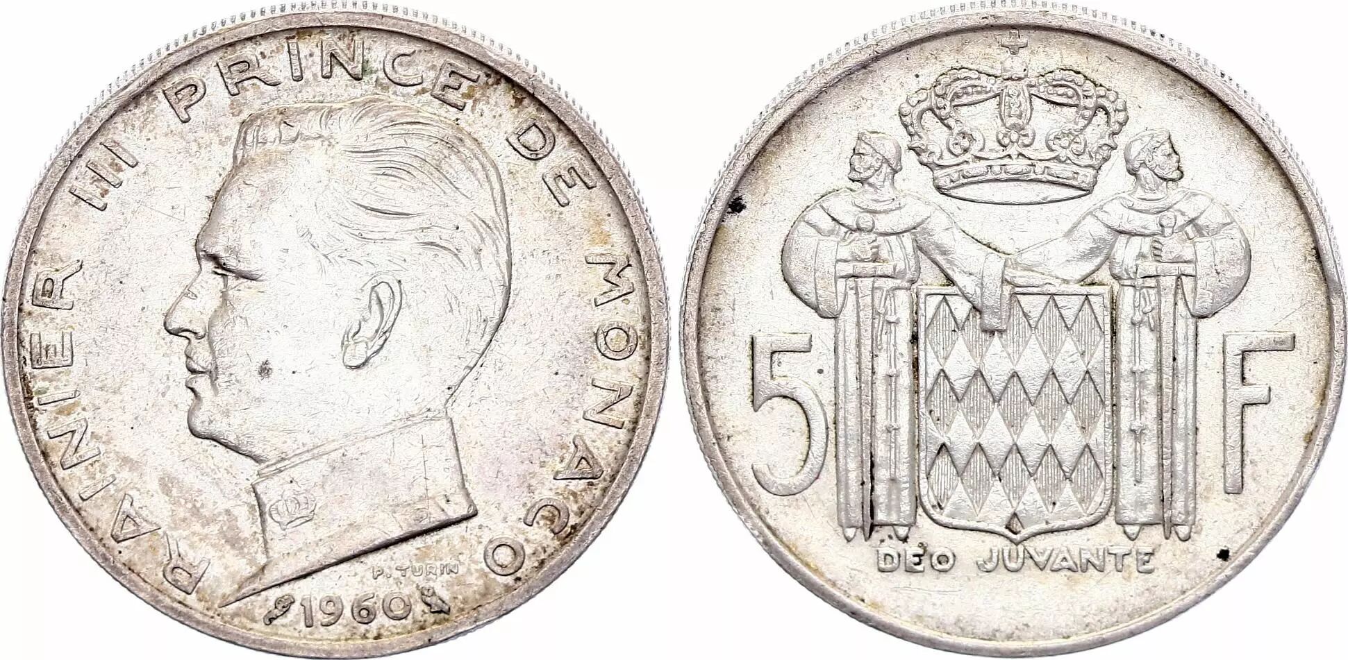 Pièce Monaco 5 Francs Rainier III - 1960 - Argent