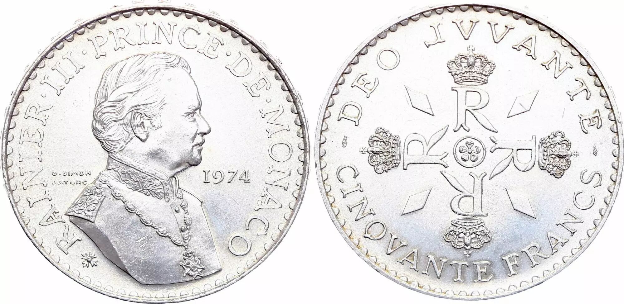 Pièce Monaco 50 Francs Rainier III - 1974 - Argent