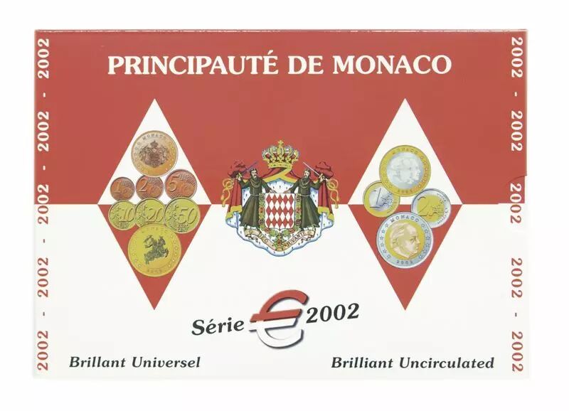 Ce coffret numismatique commémore l'introduction de l'euro à Monaco en 2002. Il regroupe les huit coupures de la monnaie européenne, allant de 1 centime à 2 euros, toutes frappées spécialement pour les collectionneurs.