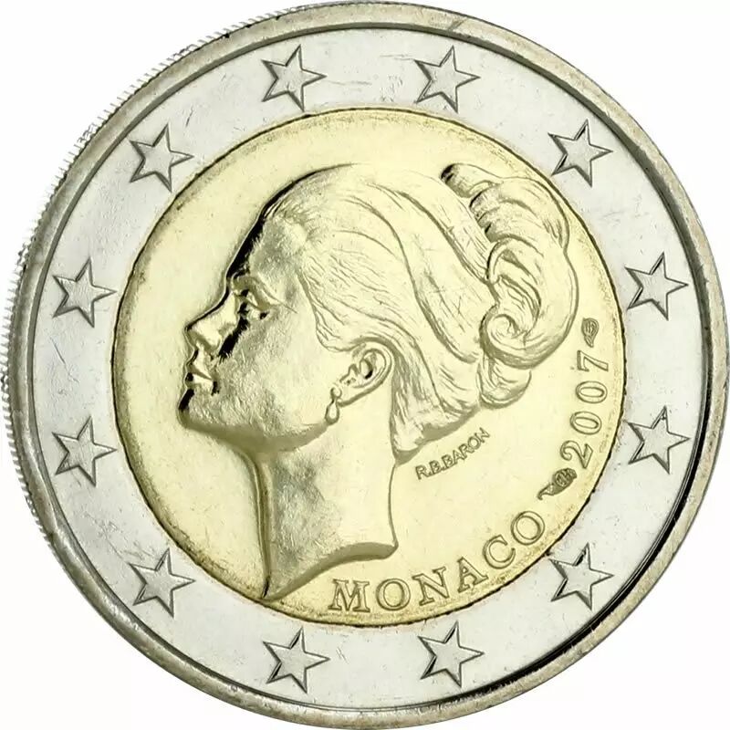 Cette pièce commémorative de 2 euros a été émise par la principauté de Monaco en 2007. Elle est dédiée à la Princesse Grace. La pièce est fabriquée en bimétal, une caractéristique commune aux pièces de 2 euros. Le poids de cette pièce est de 8,5 grammes et son diamètre mesure 25,75 millimètres.