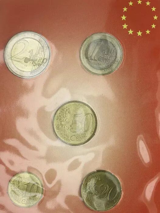 Série incluant les pièces courantes de 2002 à savoir la 10, 20, 50 centimes et la 1 et 2 €. Série rare !