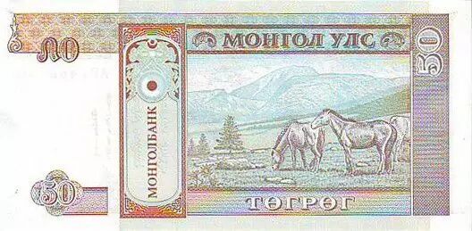 Home > World Banknotes > Asian Banknotes > Mongolia > Mongolia 50 Tugrik 1993 - Sukhe-Bataar - Horses