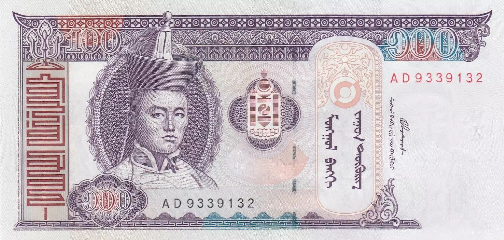 Ce billet appartient à une série spécifique désignée par l'appellation "AD". Il témoigne de l'histoire et de la culture de la Mongolie à travers ses symboles et ses personnages emblématiques.
