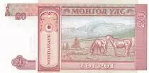 Billet Mongolie 20 Tugrik 1993 - Sukhe-Bataar - Chevaux