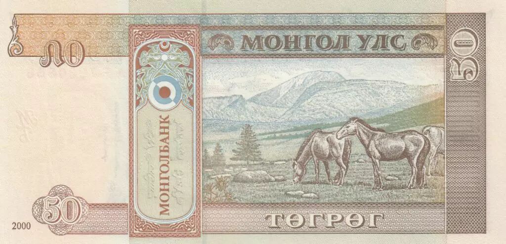 Billet Mongolie 50 Tugrik 2000 - Sukhe-Bataar - Chevaux