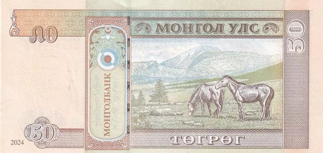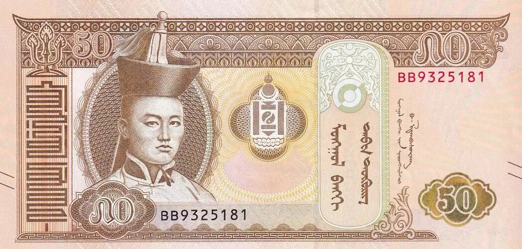 Le billet de 50 tugrik est un moyen de paiement officiel en Mongolie. Il sert de reflet de l'histoire et de la culture du pays à travers ses illustrations et ses inscriptions. La combinaison des alphabets traditionnels et modernes témoigne de l'évolution linguistique de la Mongolie. Les motifs ornementaux et les couleurs utilisées sont typiques de l'art et du design mongols.
