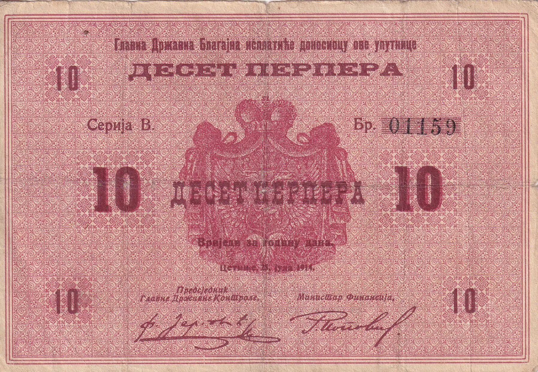 Accueil > Archivage > Monténégro 10 Perpera - Armoiries - 1914 - P.10