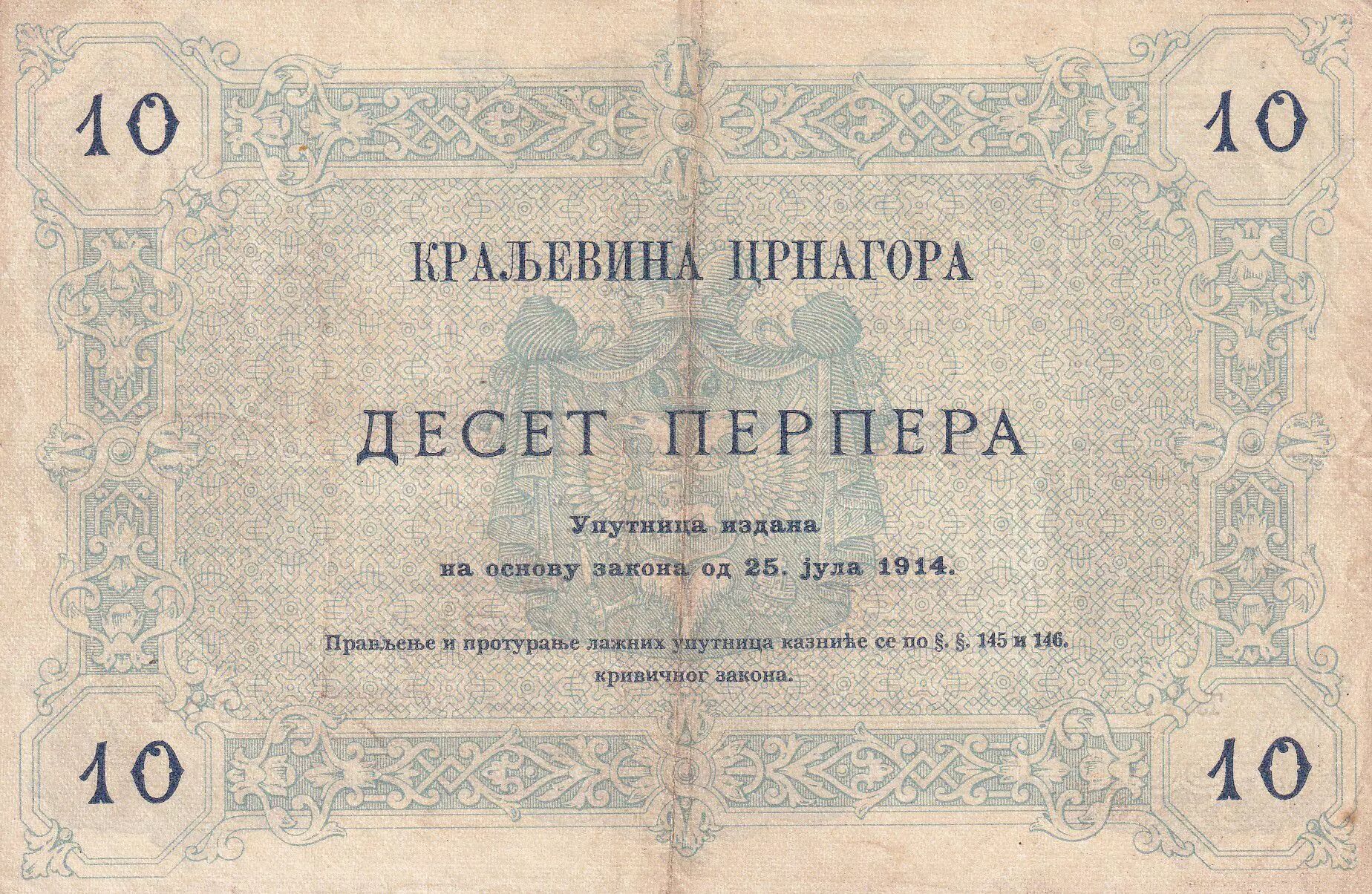 Accueil > Archivage > Monténégro 10 Perpera - Armoiries - 1914 - Série C. 11 - P.18