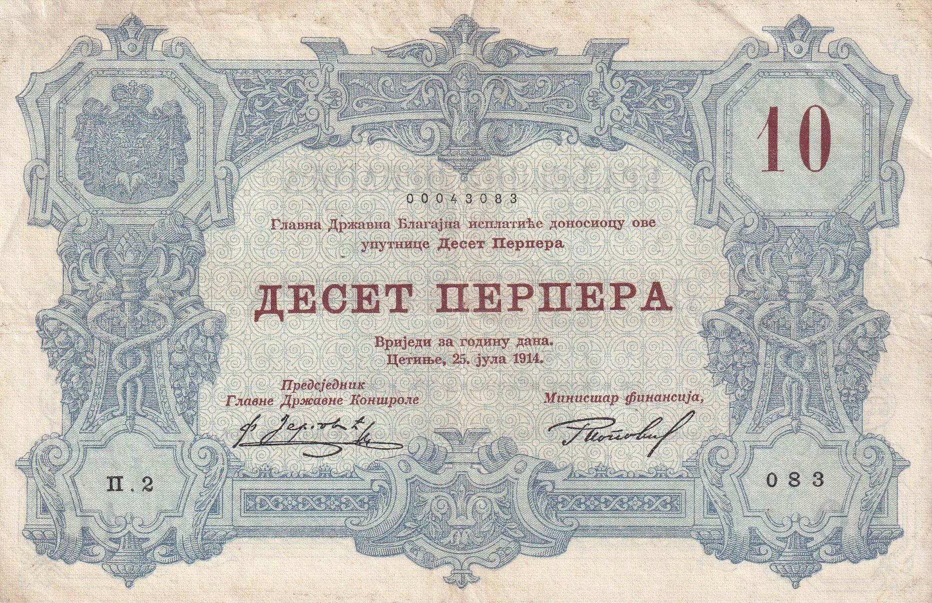 Home > > Montenegro 10 Perpera - Coat of arms - 1914 - Serial P.2 - P.18