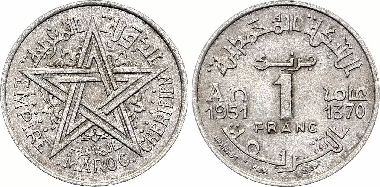 Coin Morocco 1 Franc Cherifian Empire - 1370 (1951)