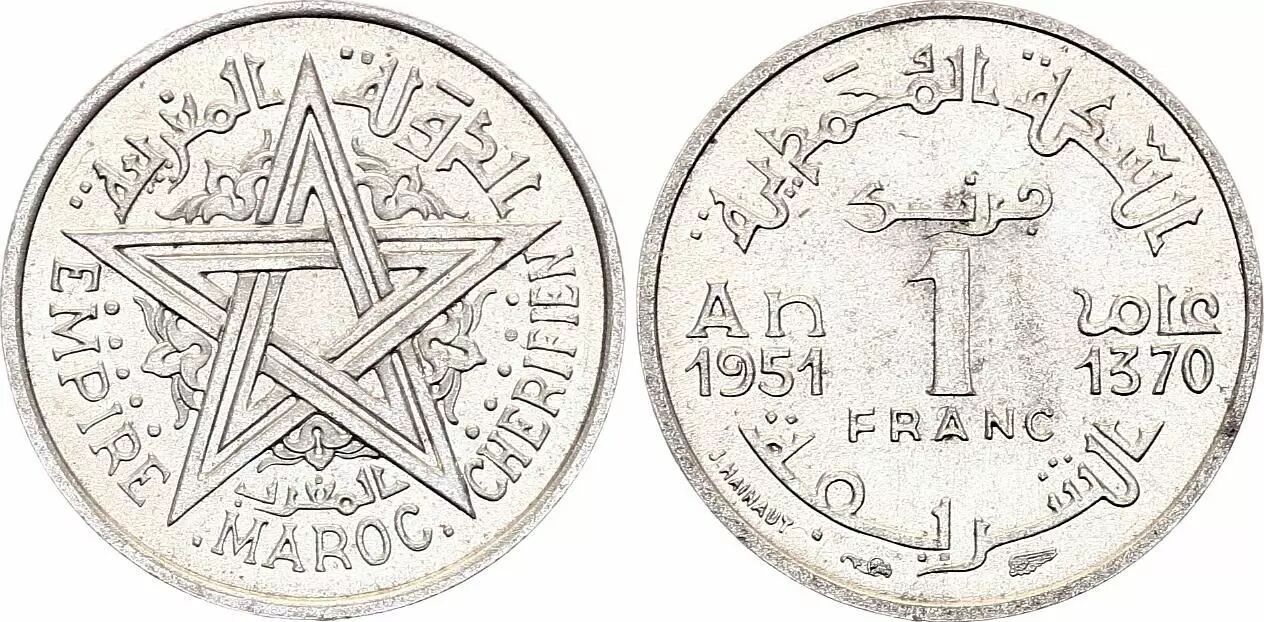 Coin Morocco 1 Franc Cherifian Empire - 1370 (1951)