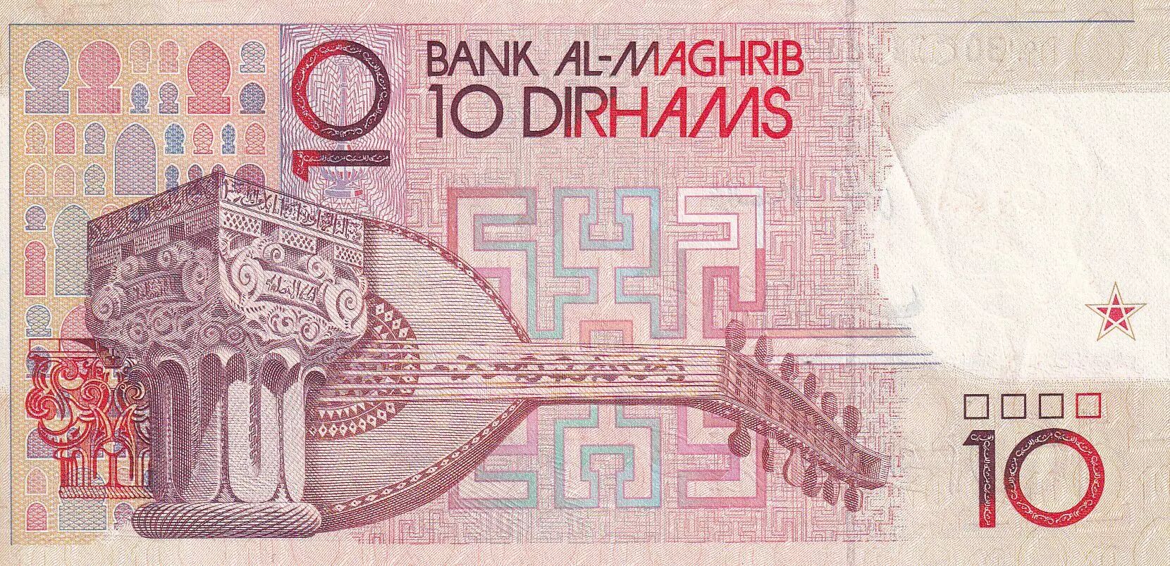 Home > World Banknotes > African Banknotes > Morocco > Morocco 10 Dirhams - Hassan II - Musical instrument - 1987 - AU - P.60b