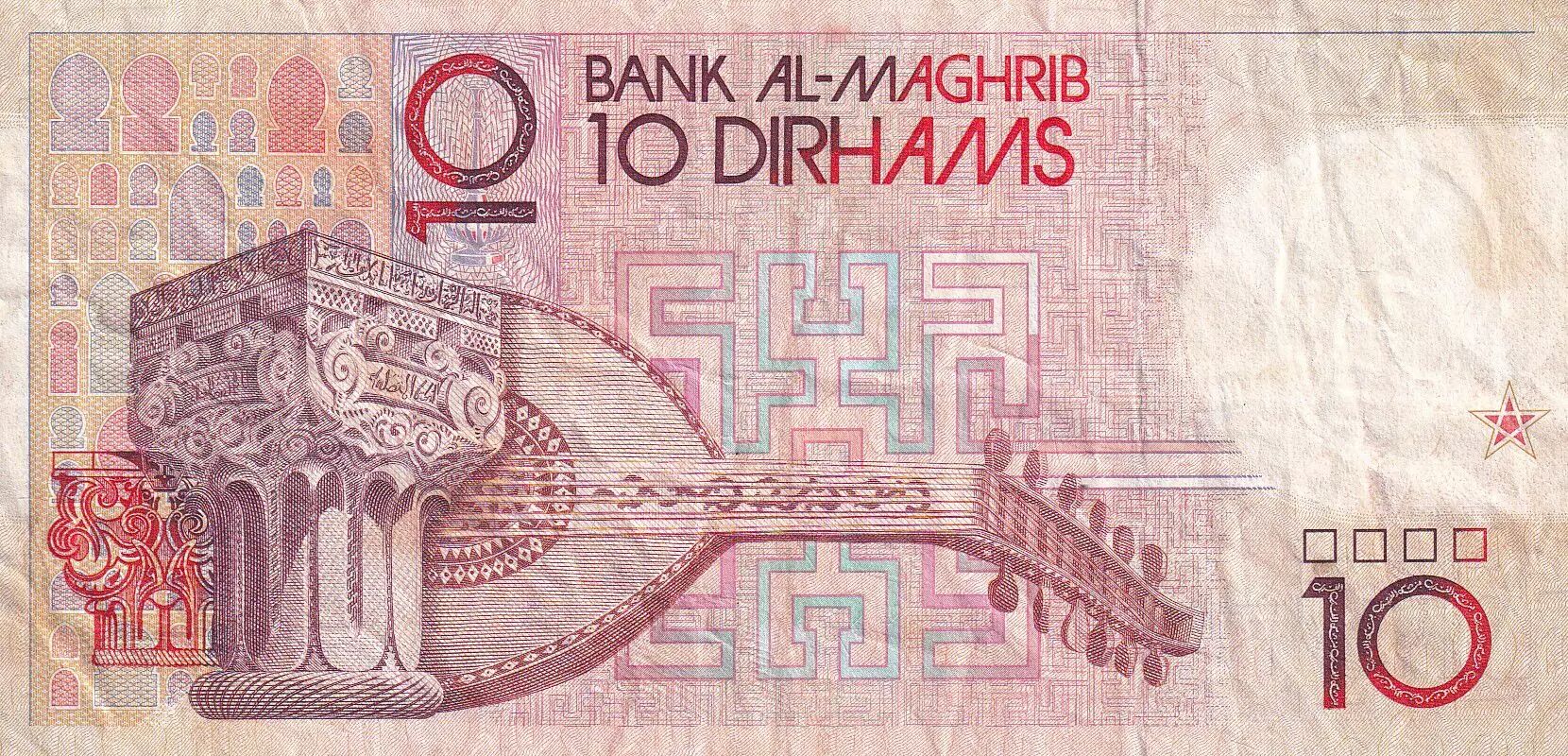 Home > > Morocco 10 Dirhams - Hassan II - Musical instrument - 1987 - F to VF - P.60a