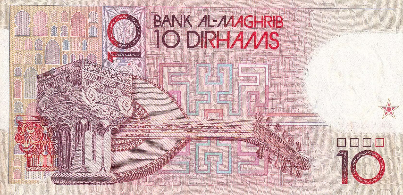 Banknote Morocco 10 Dirhams - Hassan II - Musical instrument - 1987 - XF to AU - P.60a