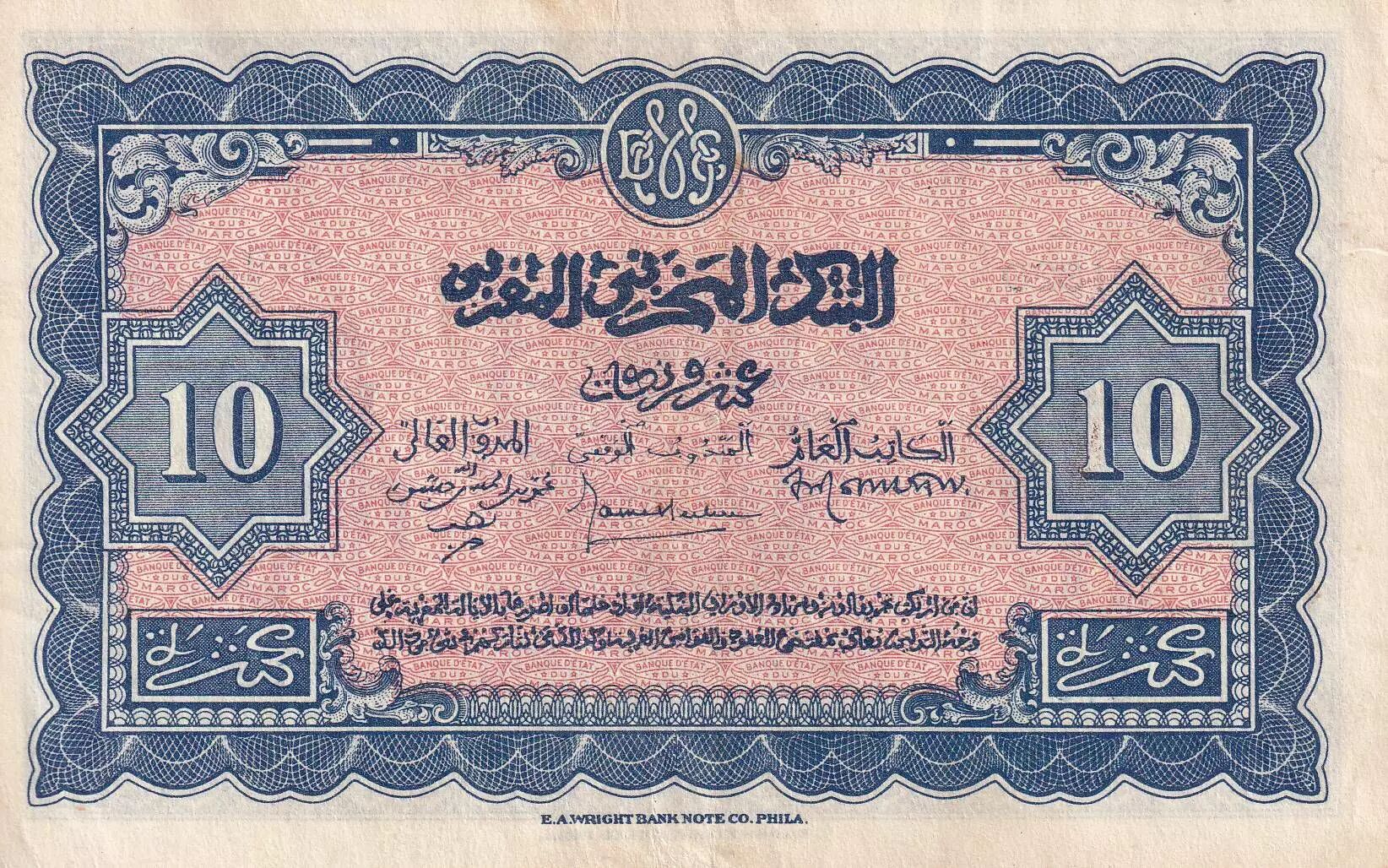 Banknote Morocco 10 Francs - 01-03-1944 - XF - Serial O.1320 - P.25