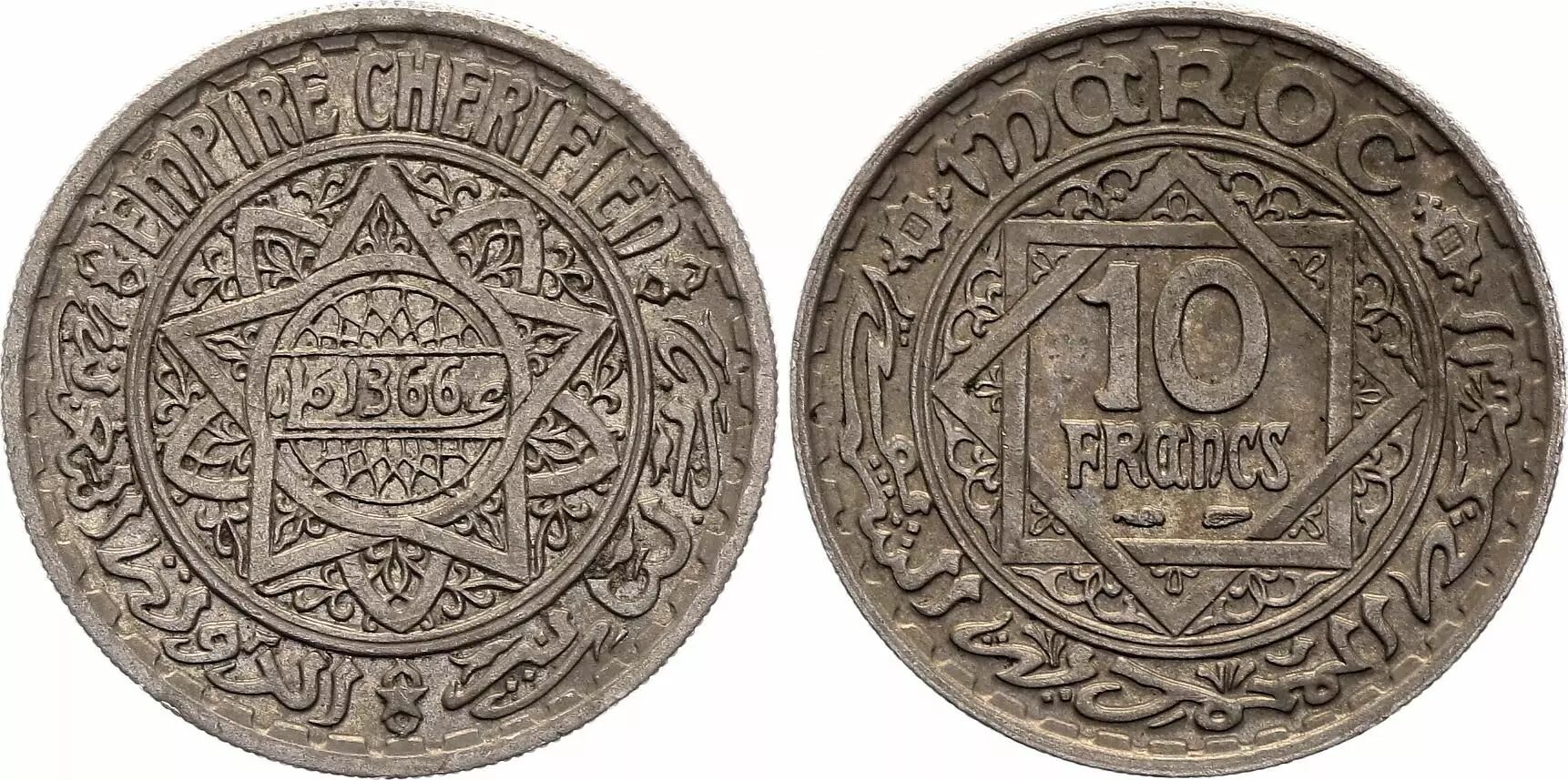 Coin Morocco 10 Francs Cherifian Empire - 1366 (1947)
