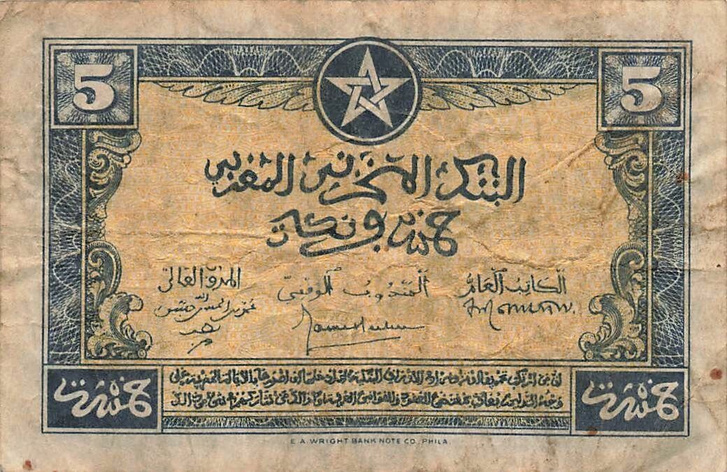Home > World Banknotes > African Banknotes > Morocco > Morocco 5 Francs - 01-03-1944 - P.24b