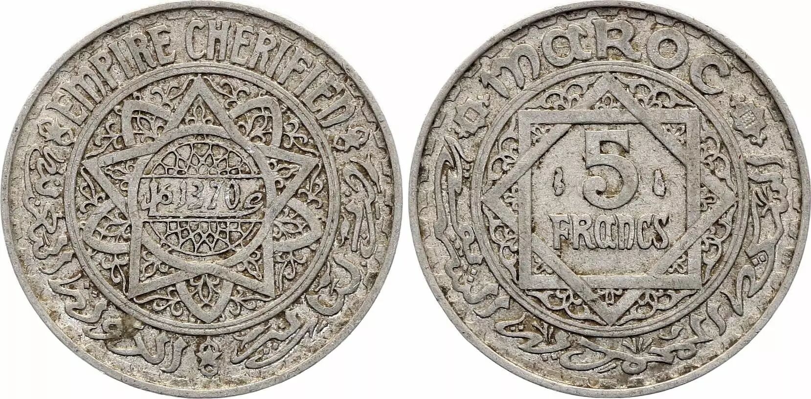 Home > World Coins > African Coins > Morocco > Morocco 5 Francs Cherifian Empire - 1370 (1951)