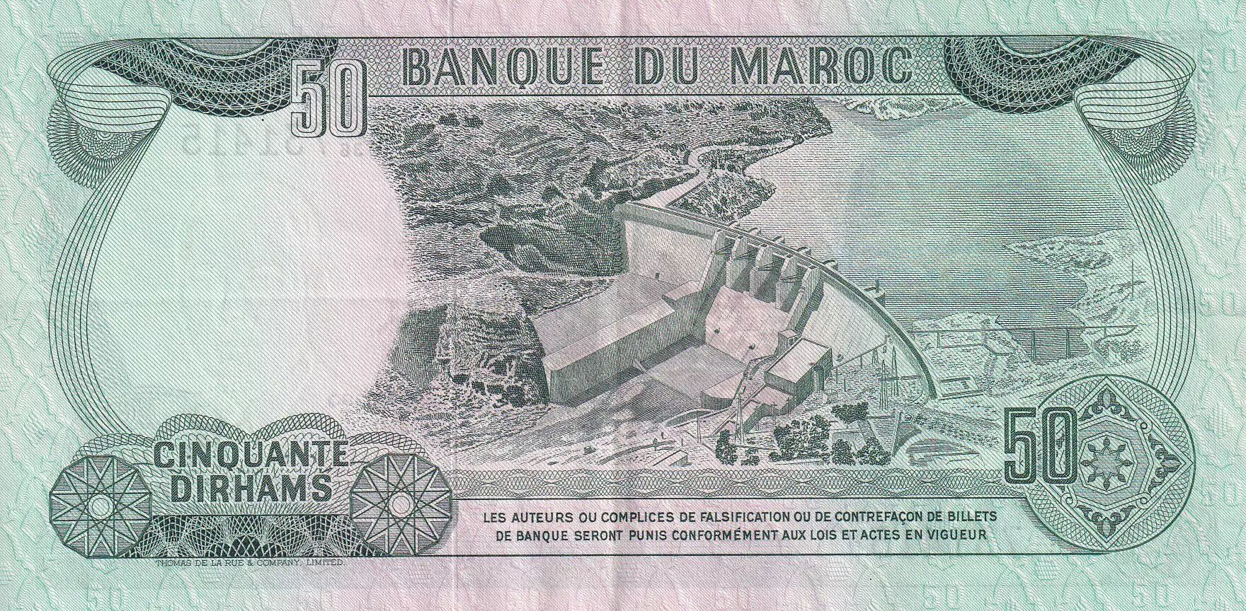 Home > > Morocco 50 Dirhams - Hassan II - Barrage - 1970 - Serial C.36 - VF to XF - P.58