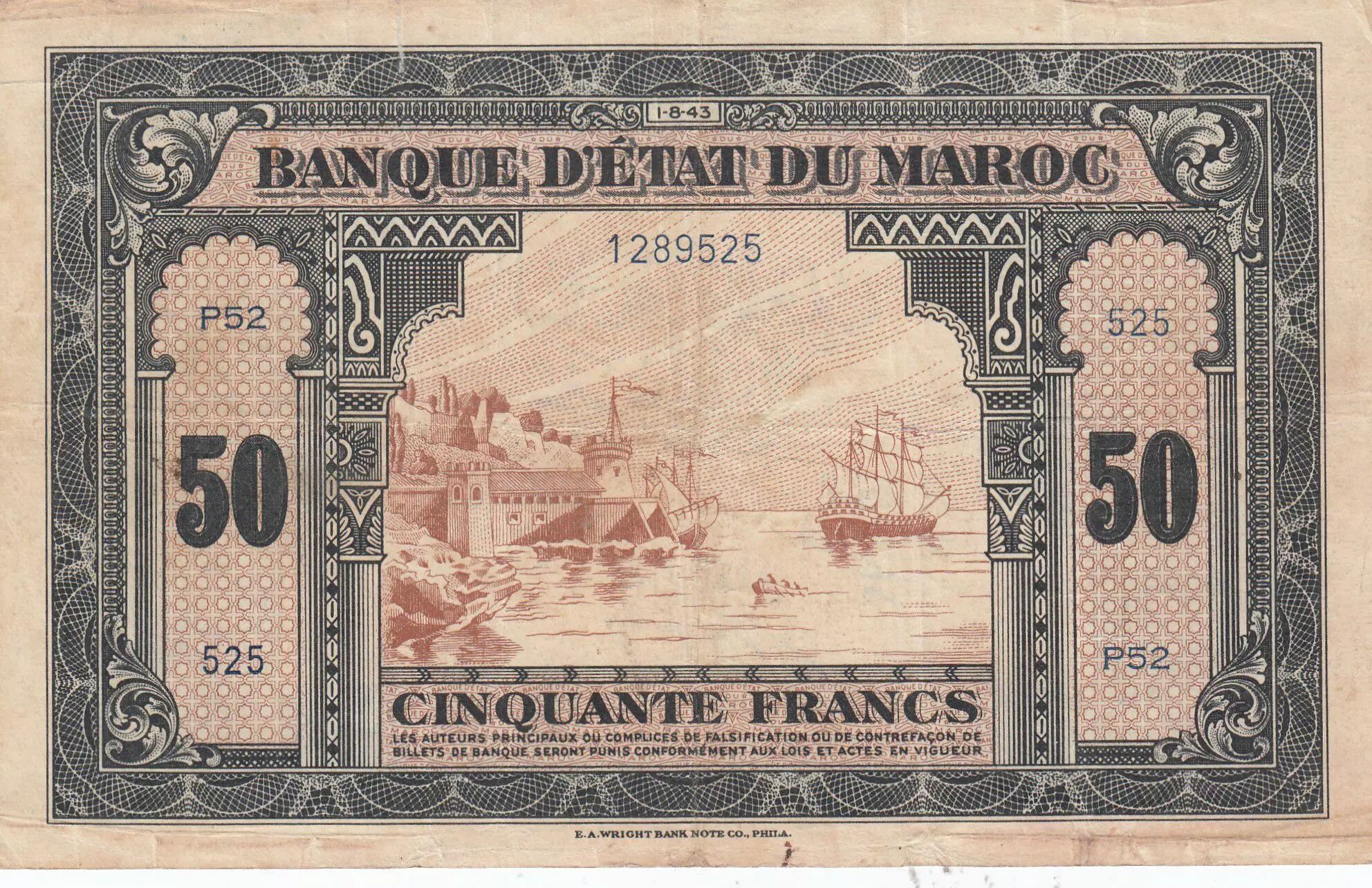 Home > > Morocco 50 Francs - 01-08-1943 - VF - Serial P52 - P.26a