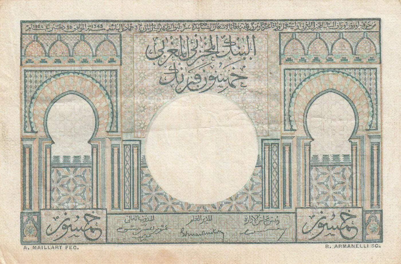 Home > > Morocco 50 Francs Gateway - 02-12-1949 - VF - Serial K.12-65402 - P.44