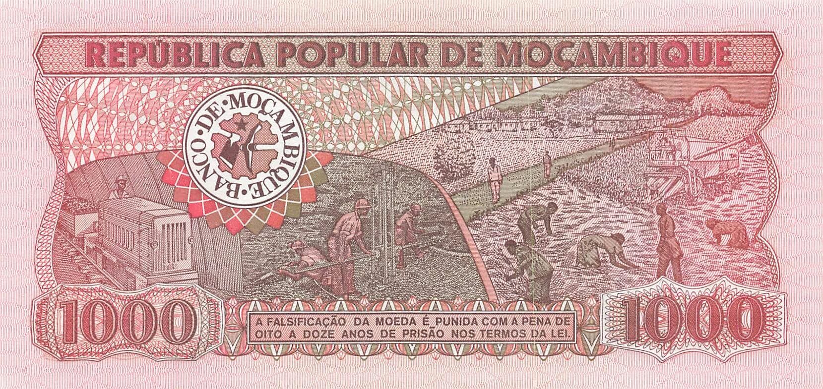 Home > World Banknotes > African Banknotes > Mozambique > Mozambique 1000 Meticais - 1983 - Replacement - P.132