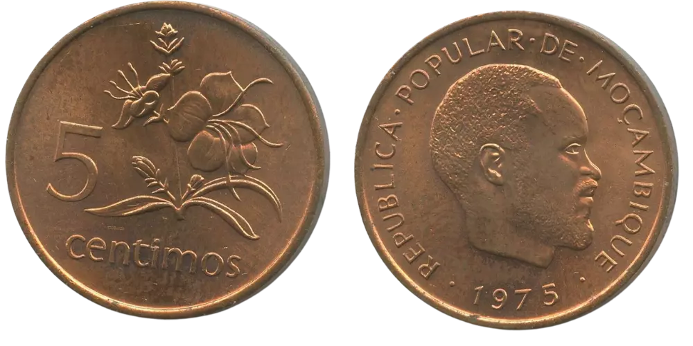Accueil > Monnaies du monde > Monnaies d'Afrique > Mozambique > Mozambique 5 Centimos Président Samora Machel - 1975