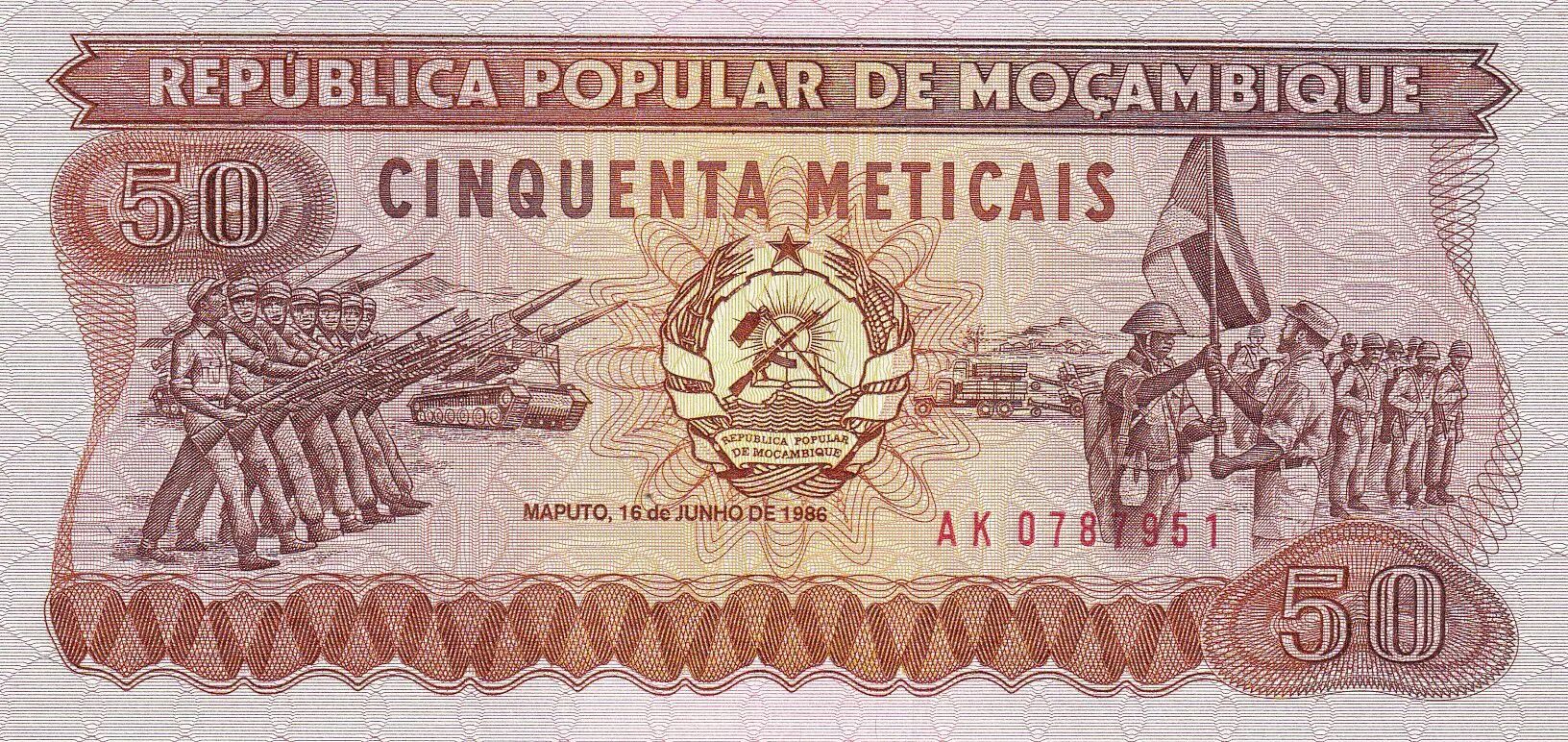 Home > > Mozambique 50 Meticais - Soldiers, flag ceremony - 1986 - Serial AK - P.129b