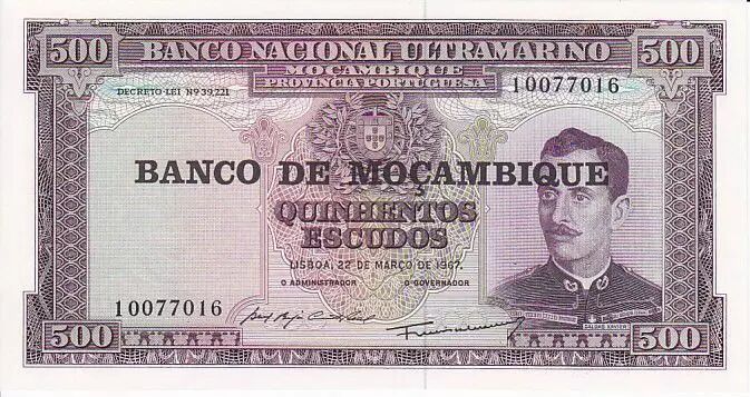 Billet Mozambique 500 Escudos Xavier Caldas