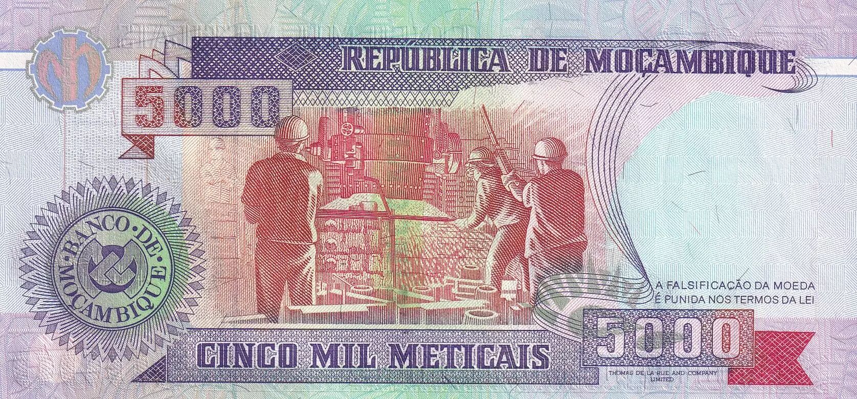 Home > > Mozambique 5000 Meticais - Samora M. Machel - Industry - 1991 - Serial CB - P.136