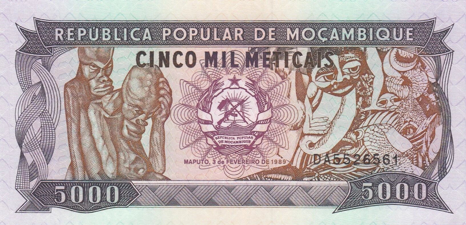 The 5000 meticais banknote from 1989 is a testament to Mozambique's monetary history, as well as a reflection of its cultural and artistic values.