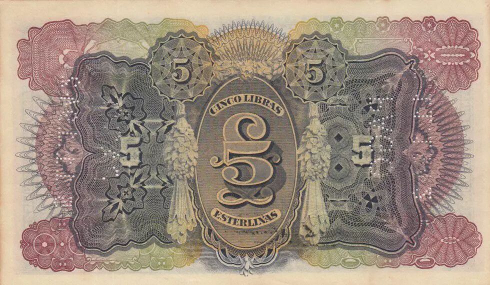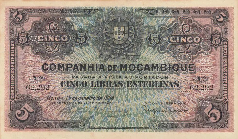 Banknote Mozambique R.32 5 Libras, Coat of arms - 1934