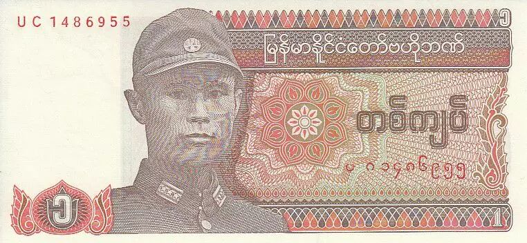 Billet Myanmar 1 Kyat - Général Aung San - Dragon - 1990 - NEUF - P.67
