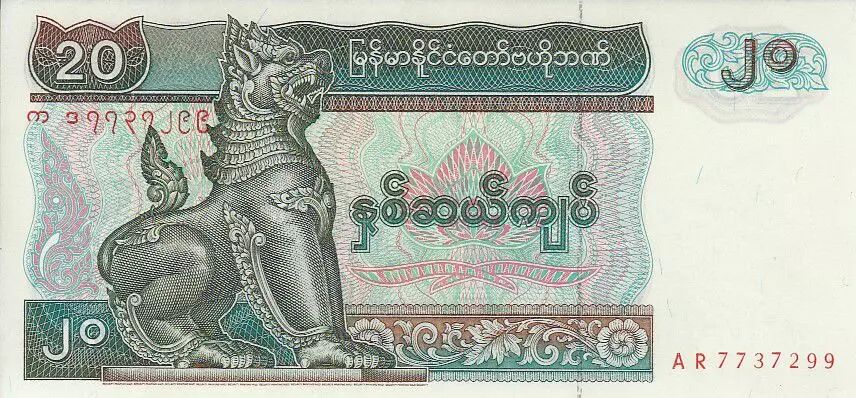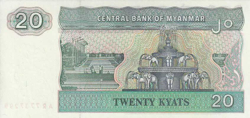 Home > World Banknotes > Asian Banknotes > Myanmar > Myanmar 20 Kyats - Chinzé - Elephants and fountain - 1994 - UNC - P.72