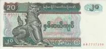 Banknote Myanmar 20 Kyats - Chinzé - Elephants and fountain - 1994 - UNC - P.72