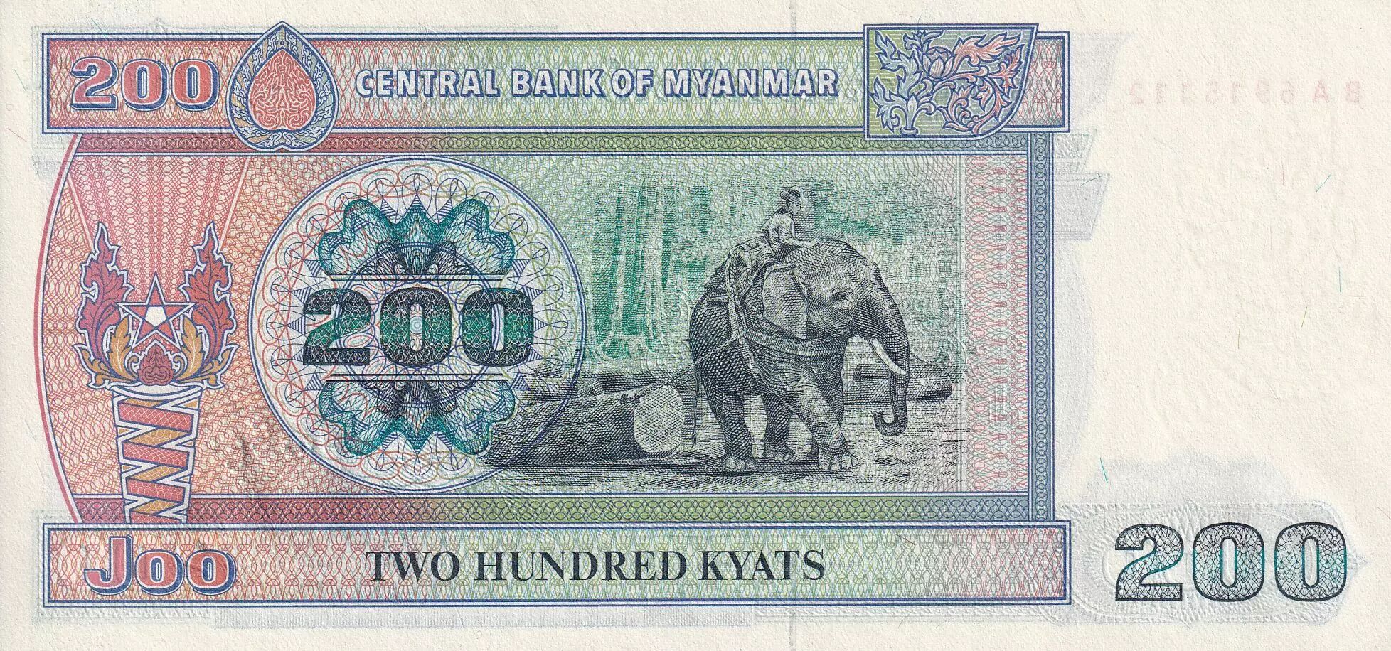 Banknote Myanmar 200 Kyats- Chinze - Elephant - 1994 - UNC - P.75