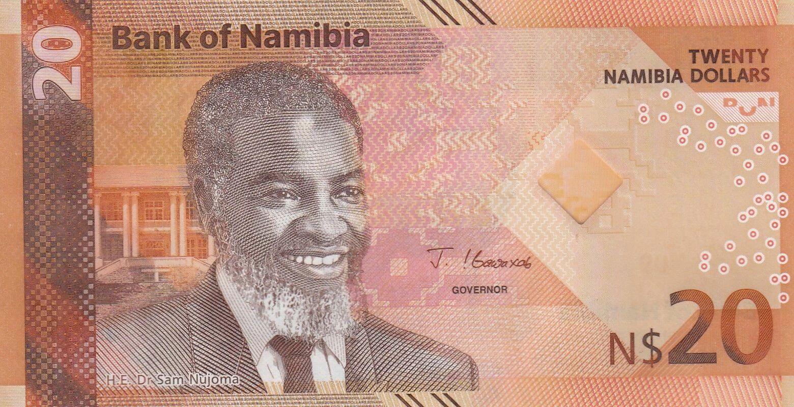 Ce billet de banque est émis par la Namibie et possède une valeur nominale de 20 dollars namibiens. Il fait partie d'une émission datée de 2025.