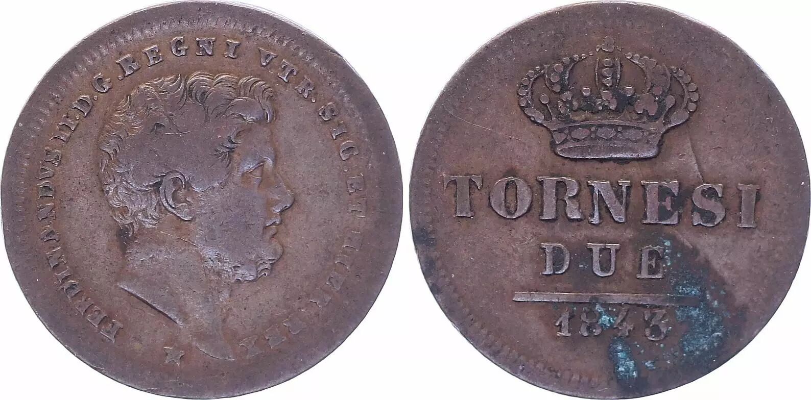 Coin Naples and Sicily 2 Tornesi Ferdinand II - 1843 - VF - KM.397