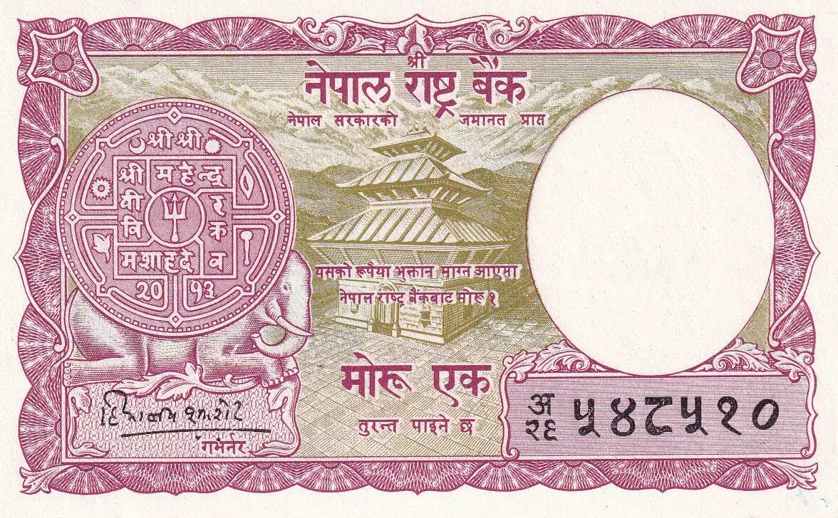 Billet Népal 1 Mohru - Pièce - Temple - 1956 - NEUF -P.8