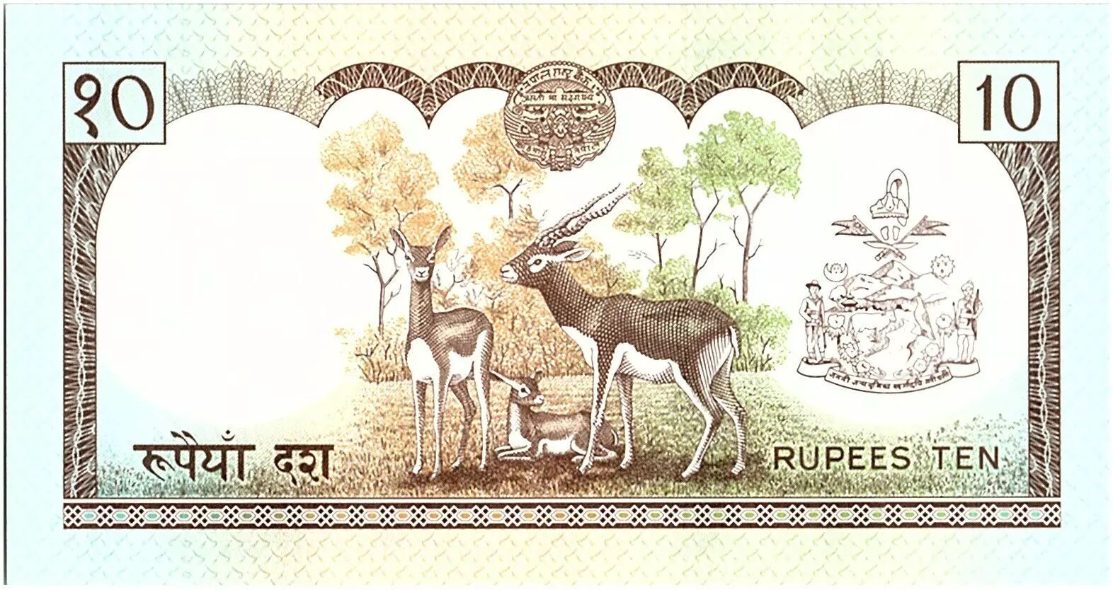 Home > > Nepal 10 Rupees, King B.B. Bikram - Antilopes - 1985 - P.31 a