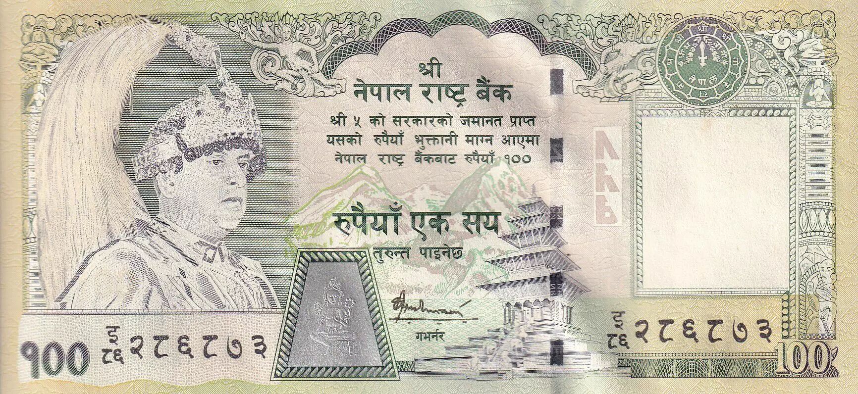 Home > > Nepal 100 Rupees - King Gyanendra Bir Bikram - Rhinocorn - 2005 - P.57