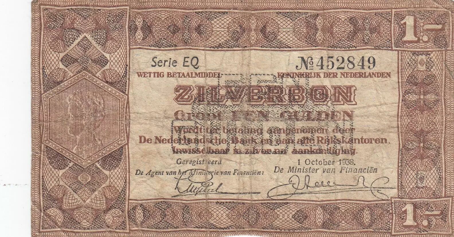 Banknote Netherlands 1 Gulden - Zilverbon - 1938 - F - P.61
