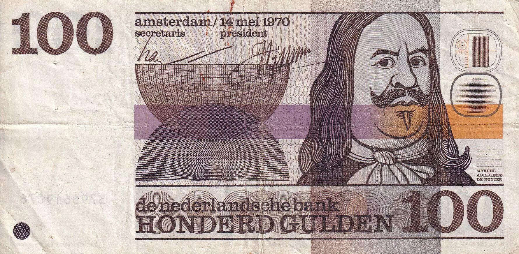 Home > World Banknotes > European Banknotes > Netherlands > Netherlands 100 Gulden - Michiel Adriaensz de Ruyter - 1970 - VF - P.93