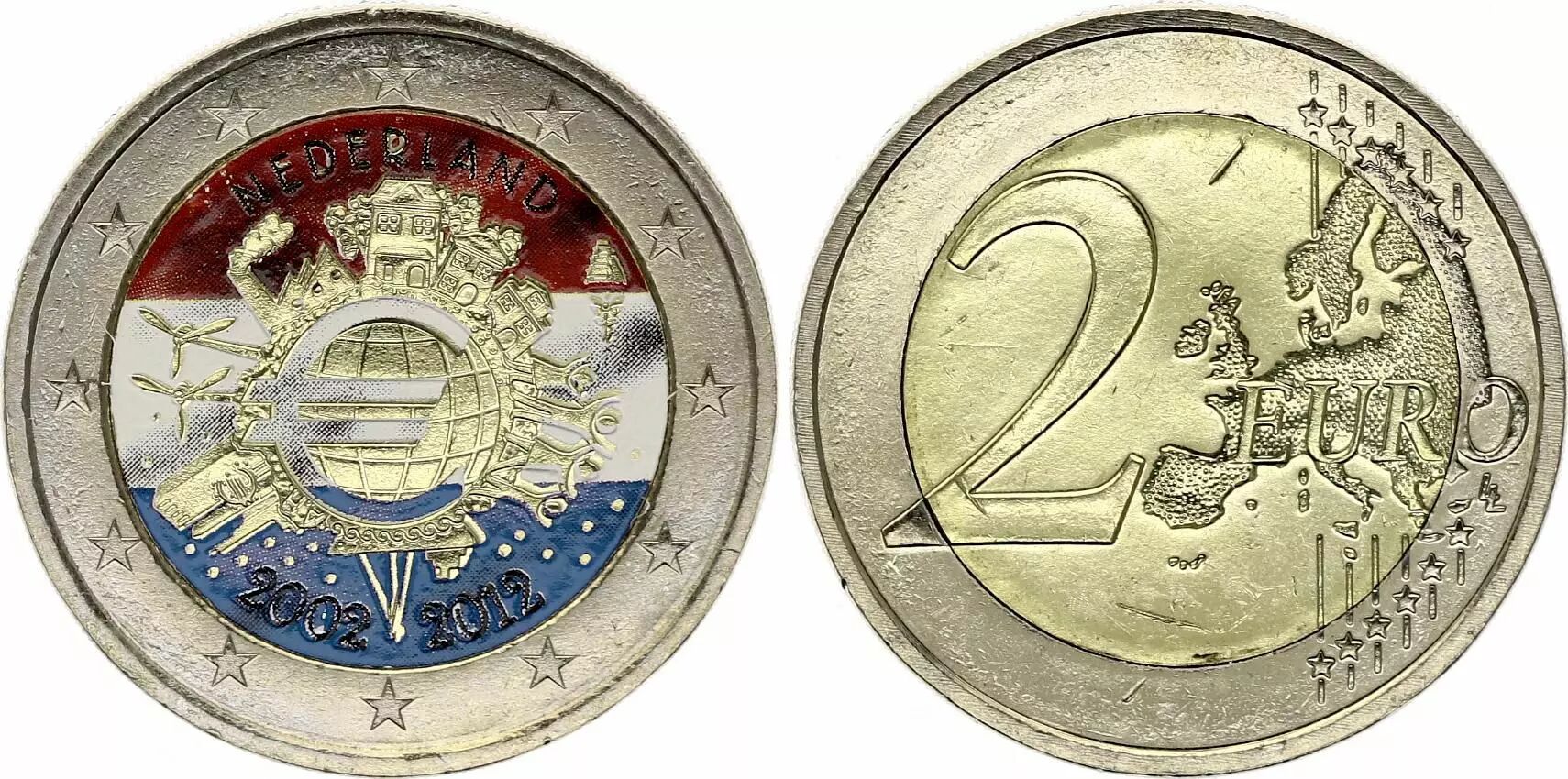 Coin Netherlands 2 Euros - 10 years of the Euro - Colorised - 2012