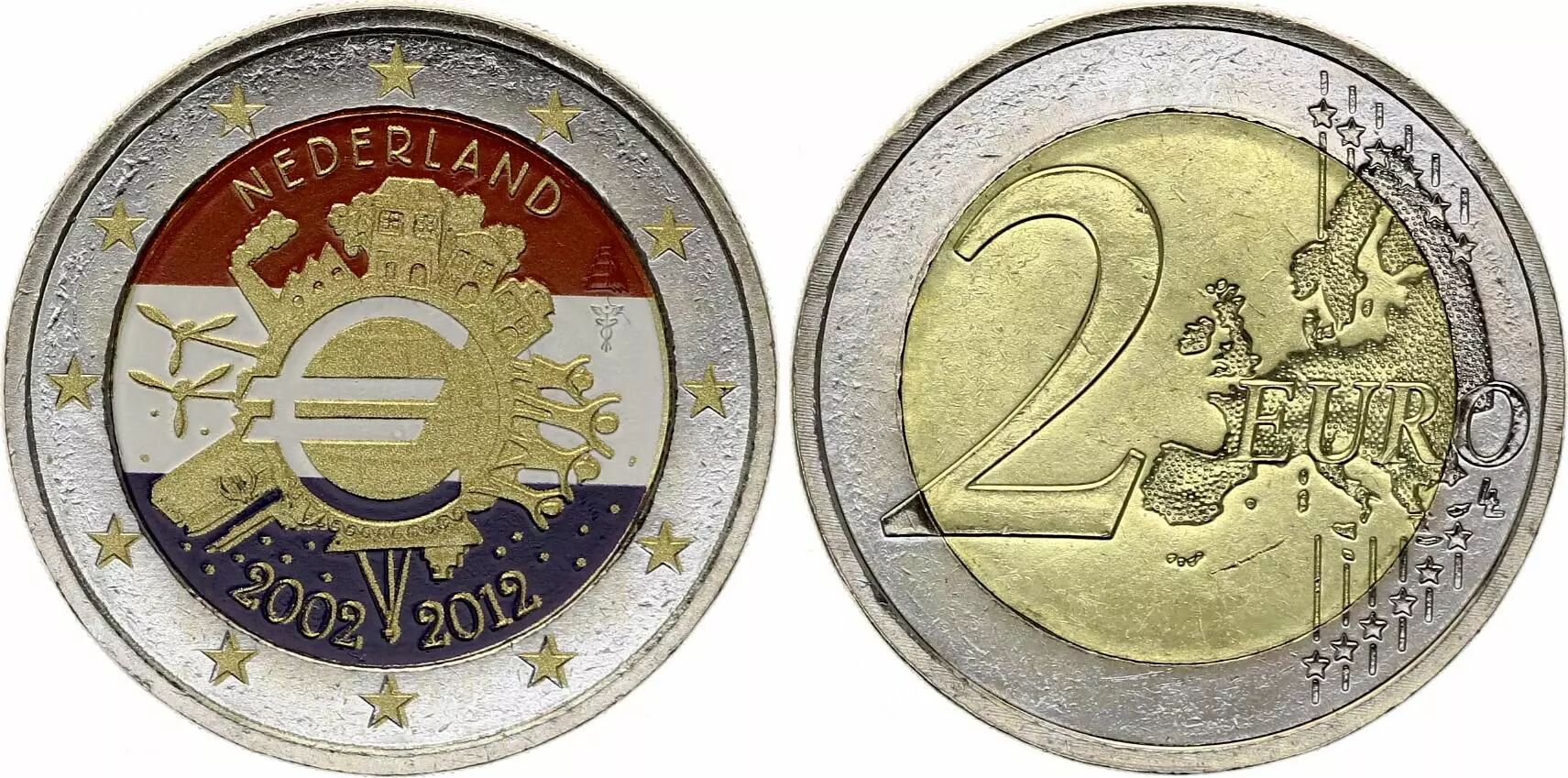 Coin Netherlands 2 Euros - 10 years of the Euro - Colorised - 2012