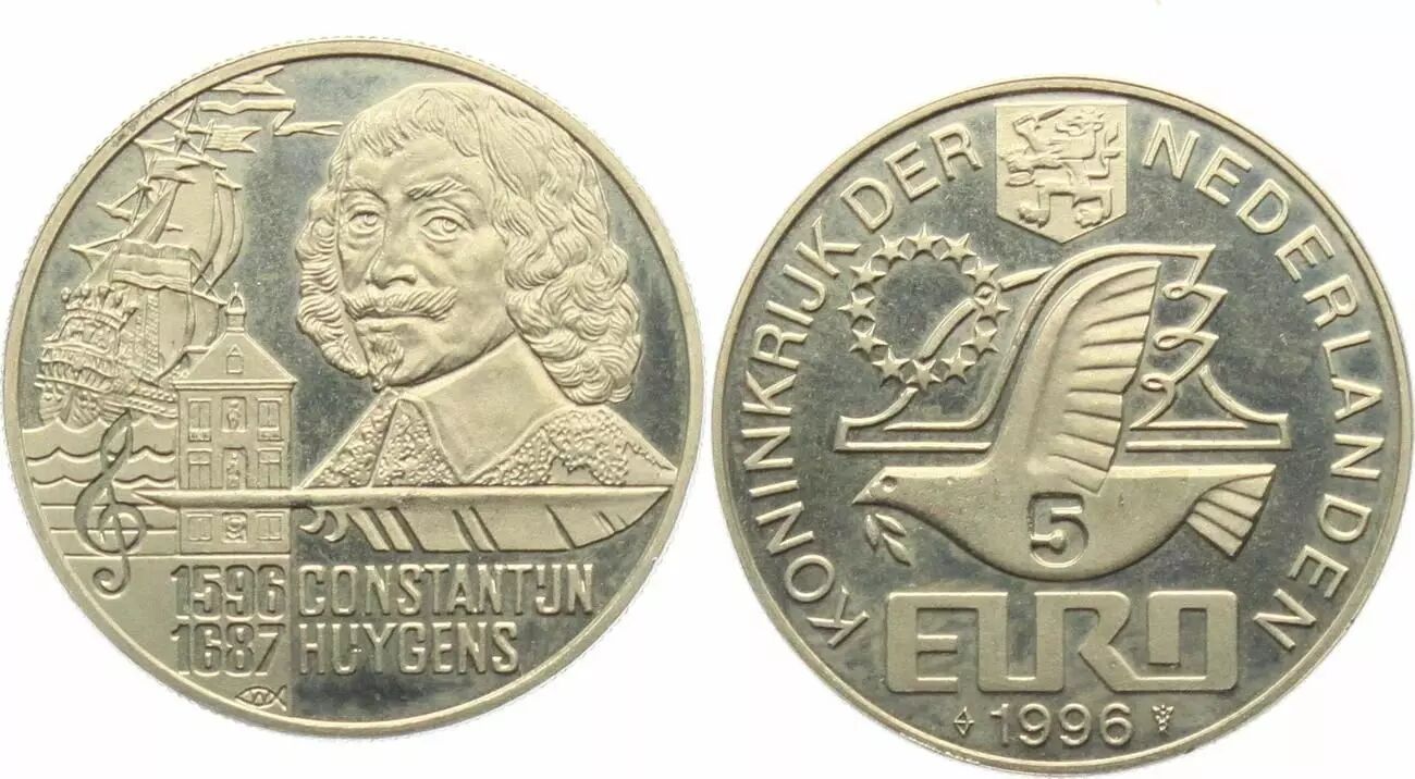 Coin Netherlands 5 Euros - Constantin Huygens - 1996